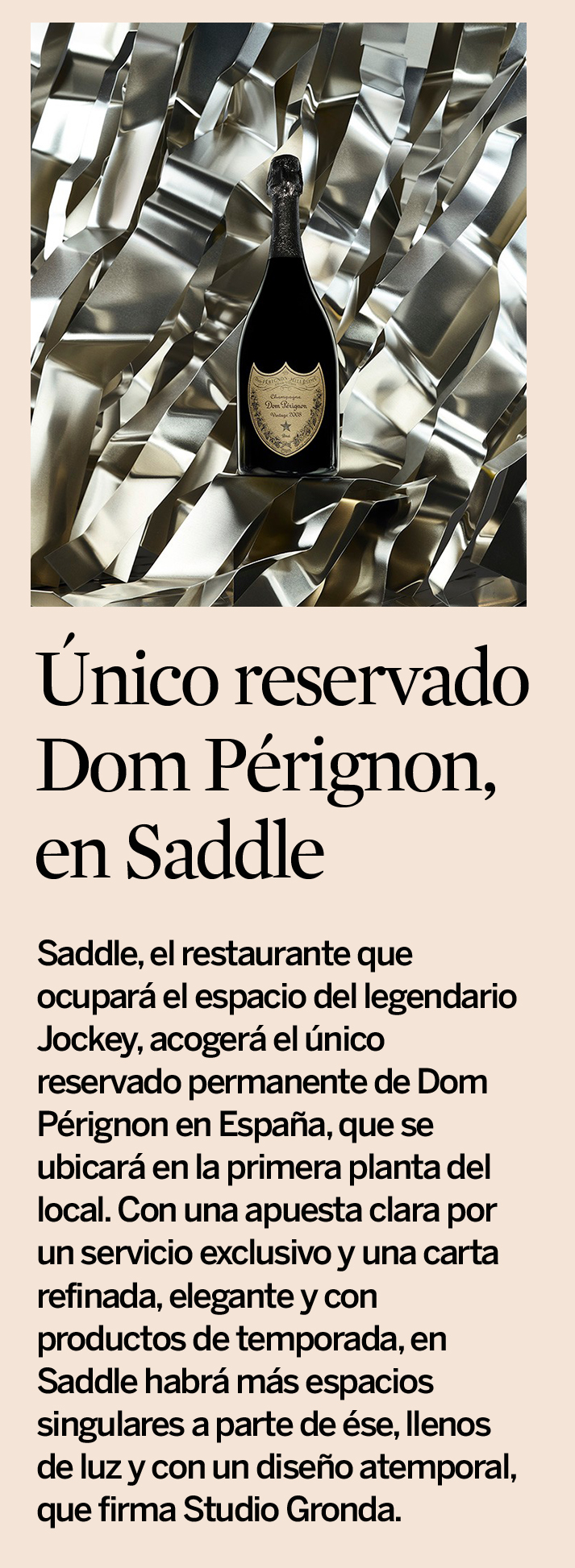 Único reservado Dom Pérignon, en Saddle Expansión